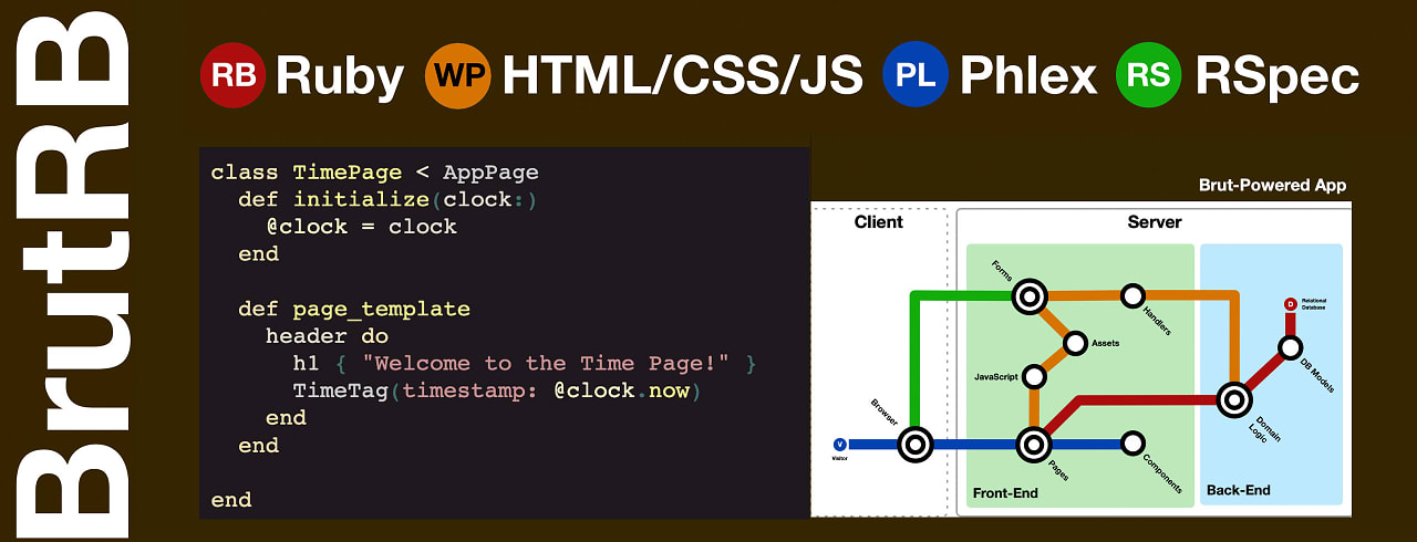 Brut: A New Web Framework for Ruby — With no controllers, no verbs, no resources, and an HTML-first, ‘low-ceremony’ approach Brut is treading its own path. Here’s a broader conceptual overview of what it’s about; I think it makes some fantastic choices and David has clearly put a lot of effort into it. (Be aware of the atypical licensing, though.) David Bryant Copeland |